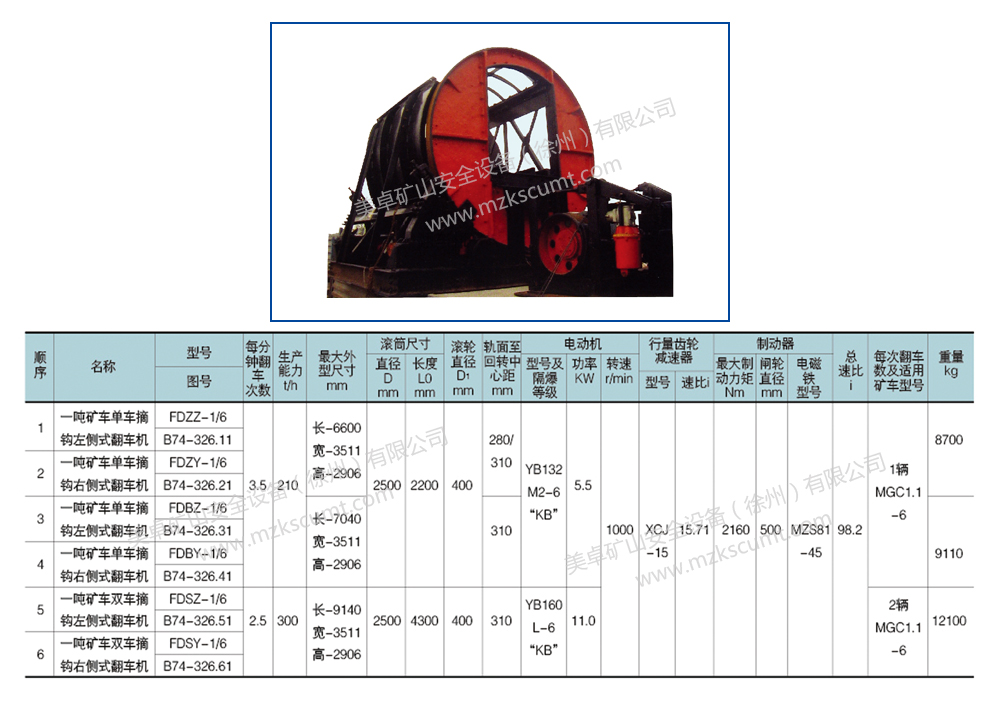 目前翻車機主要有前傾式翻車機、旋轉式翻車機和高位翻車機三類,按一次翻卸車數分為單車和雙車式,按列車狀態分摘鉤式和不摘鉤式,按回轉方向分為左側式和右側式。